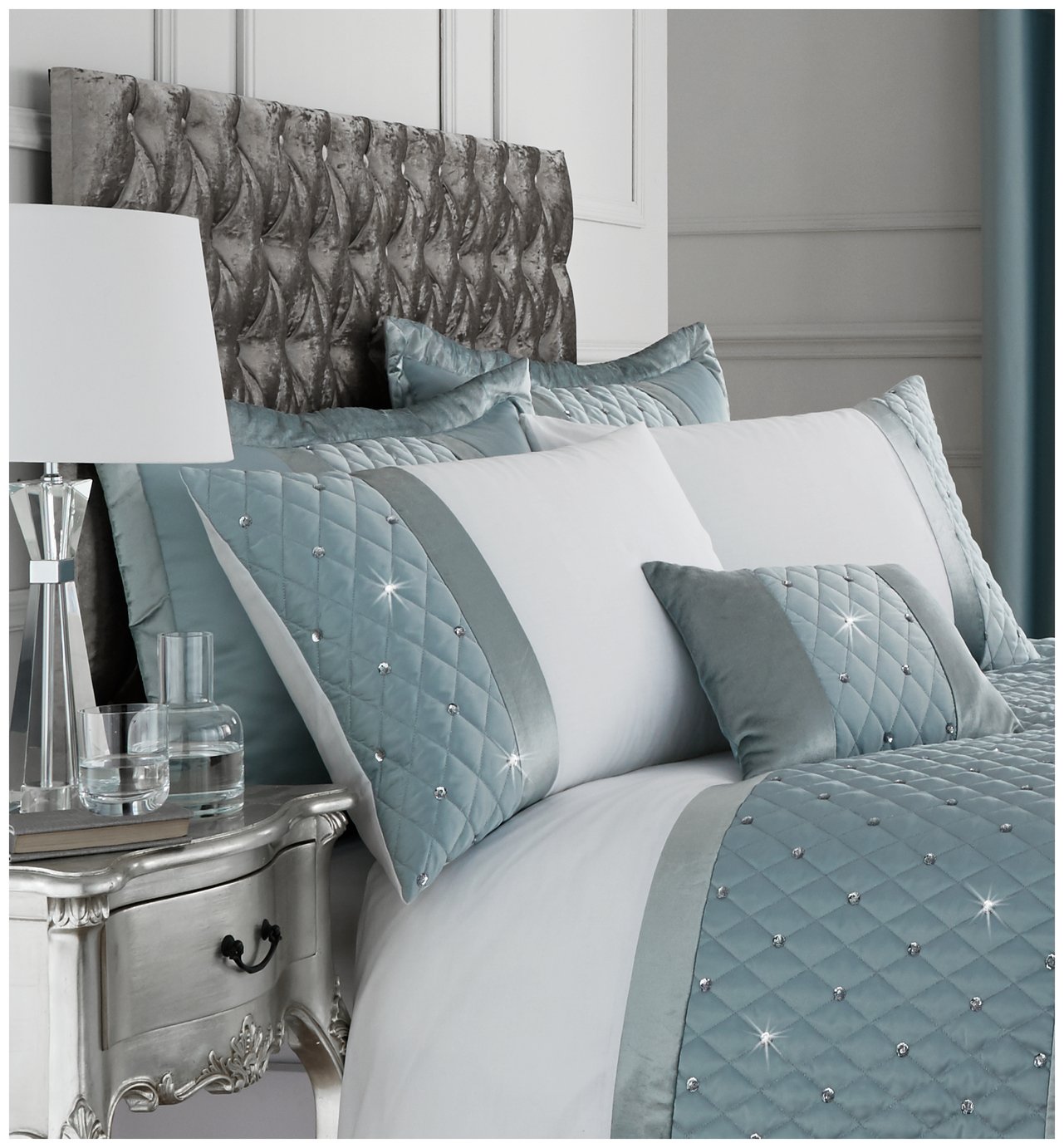 Catherine Lansfield Pair of Sequin Pillowshams - Duck Egg