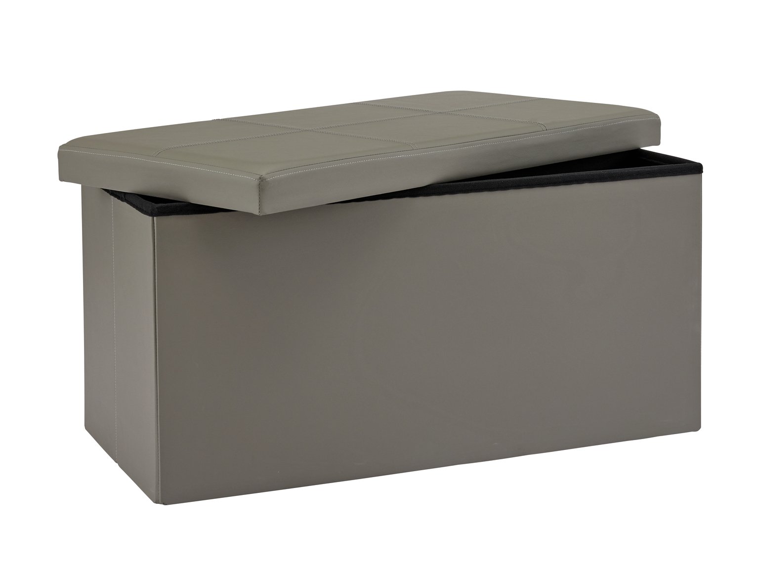 Argos Home Large Faux Leather Stitched Ottoman - Grey